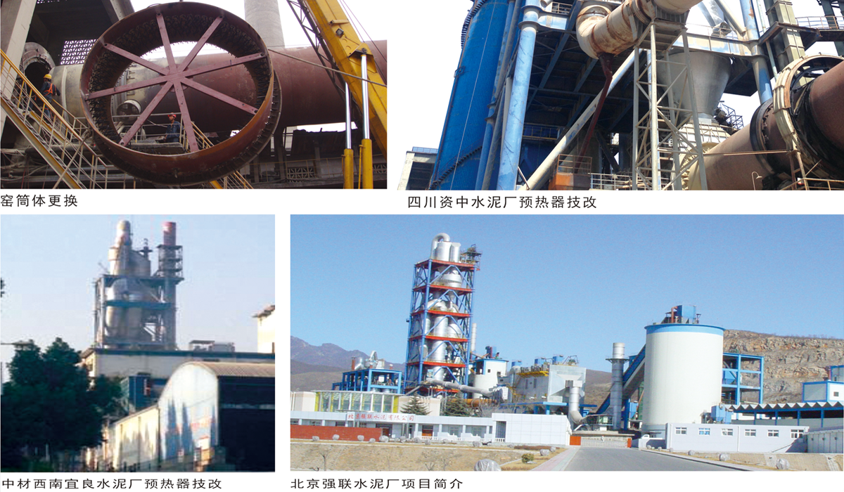 我公司每年為十幾個(gè)水泥廠提供大修改造服務(wù),主要內(nèi)容有∶ 窯系統(tǒng)換民,預(yù)熱器更換澆筑料窯托輪更換軸承瓦,更換窯口鐵,更換筒體; 磨機(jī)更換襯板,銅壓機(jī)更換銀套,立磨更換襯板及輾套; 破碎機(jī)更換襯板及錘頭,堆取料機(jī)更換鏈條及刮板; 全廠電機(jī)檢查,其他附機(jī)設(shè)備檢修; 其他甲方要求的項(xiàng)目。